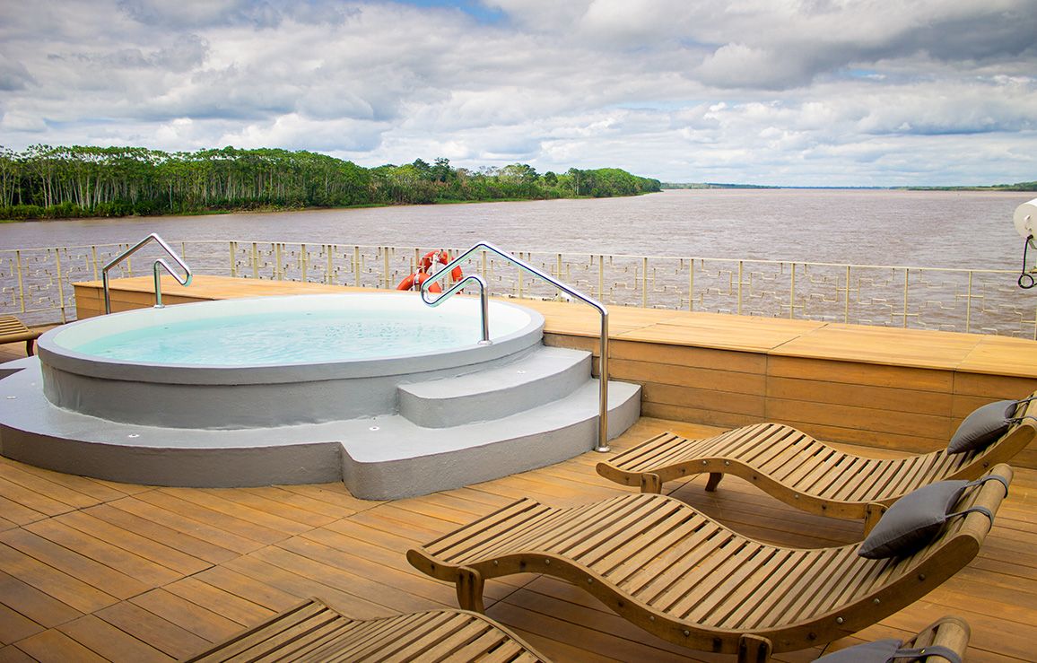 The Delfin III is one of the newest luxury vessels cruising Peru’s Amazon. On board this 22 all-suite ship, the rainforest is never far away, yet 5-star comforts and conveniences abound on board. Explore one of the wildest and bio-diverse places on earth while enjoying luxury aboard this intimate yet spacious vessel. Spend time relaxing on the open-air sun deck, take a dip in the refreshing plunge pool, or take a cooking class in the indoor lounge. Taste a Pisco sour at the ship’s bar or pamper yourself with a spa treatment of Amazon elixirs. It truly is luxury at its finest. Experience famed Peruvian cuisine as well as conventional favorites prepared by an expert culinary staff using locally sourced ingredients. Indulge in exceptional menus featuring roasted meats, grilled fish, savory vegetables, sun-ripened tropical fruits, decadent desserts, and free-flowing wine during dinner. The Delfin III’s expert Naturalists guide you to explore the small Amazon tributaries, flooded forests, and jungle villages along the river, and introduce you to the locals who call the Amazon home. Enjoy cultural performances on board, as well as Naturalist presentations about the diverse ecosystem. Off the ship, you’ll visit the Lost City of Machu Picchu, the Sacred Valley, Cusco, and Lima. Please note: For the few rivers not sailed by Avalon Suite Ships®, we carefully select only the best river ships that meet our high standard of excellence in quality, comfort, and amenities. Avalon personally charters the Delfin III to deliver the exceptional experience cruisers have come to expect from Avalon Waterways.