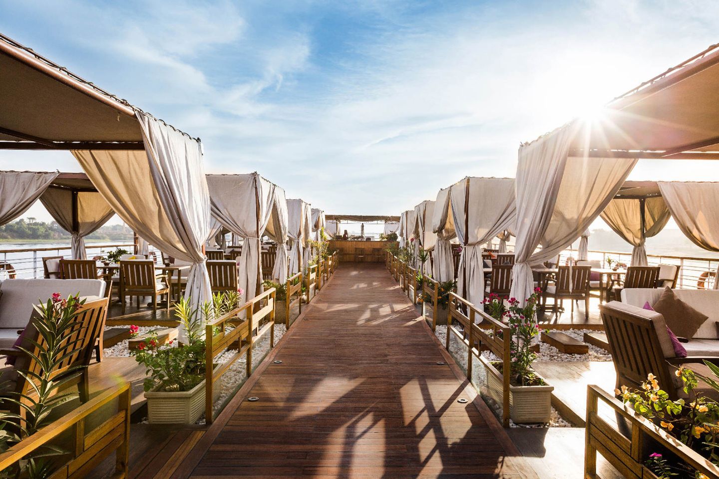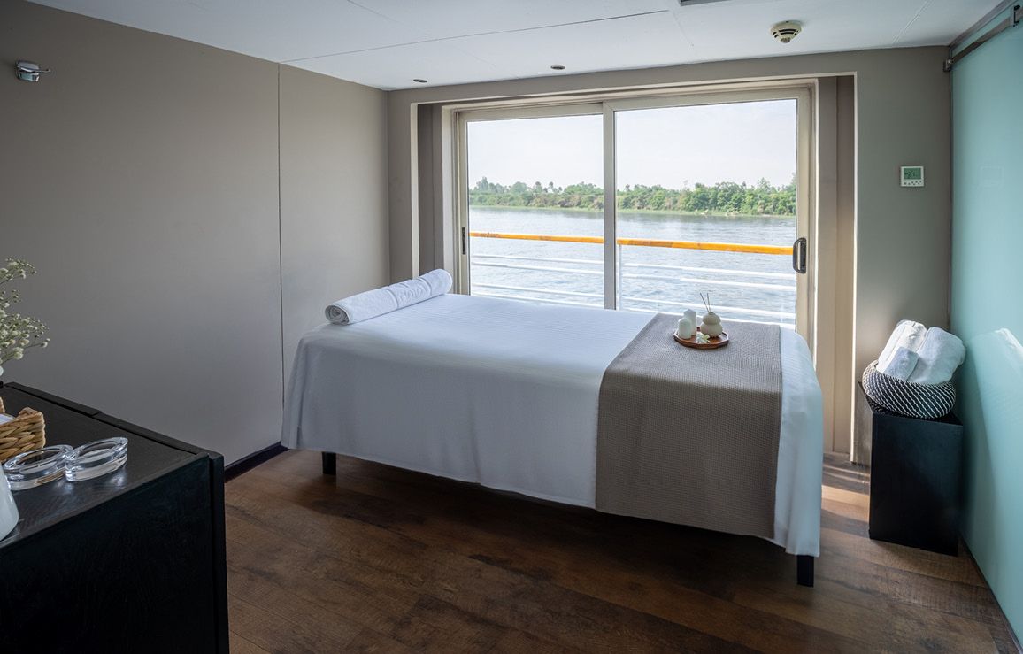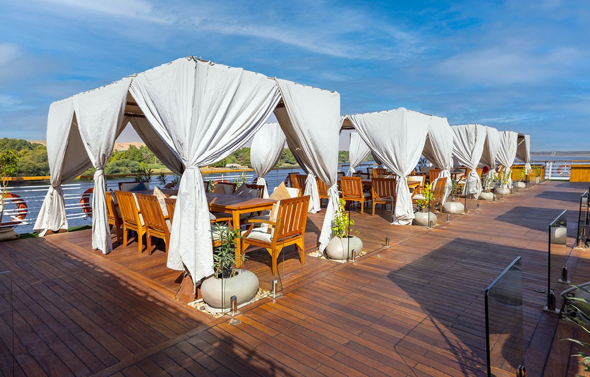 In Arabic, Farah means Happiness and Joy. In this spirit, you’ll sail on the MS Farah-one of Egypt’s most elite ships on the Nile. Cruise in style and comfort, while enjoying the mysterious and magnificent sights and experiences only found in the Egyptian landscapes. The MS Farah ship offers 56 deluxe cabins and 2 Royal Suites that feature style and comfort with oversized French balconies that are virtually wall-sized. Avalon insists on the best view and the best crew to treat you like royalty while exploring the treasures of the pharaohs on this Nile River cruise! Exploring the Nile River aboard the MS Farah is an elegant, first-class experience with a touch of mystery combined with an old world spirit of adventure, and state-of-the-art comfort, of course! Avalon’s Nile River cruise aboard the MS Farah carries you into the exotic world of pharaohs, explorers, and legends, while introducing you to locals who share the traditions of generations. Relax with onboard features, including Deluxe and Royal Suite, spa services, Wi-Fi, gourmet dining, and a caring crew who create an exceptional experience in comfort, customer service, and classic adventure on board one of the Nile’s most elite river ships. Please note: For the few rivers not sailed by Avalon Suite Ships®, we carefully select only the best river ships that meet our high standard of excellence in quality, comfort, and amenities. Avalon personally charters the MS Farah to deliver the exceptional experience cruisers have come to expect from Avalon Waterways.