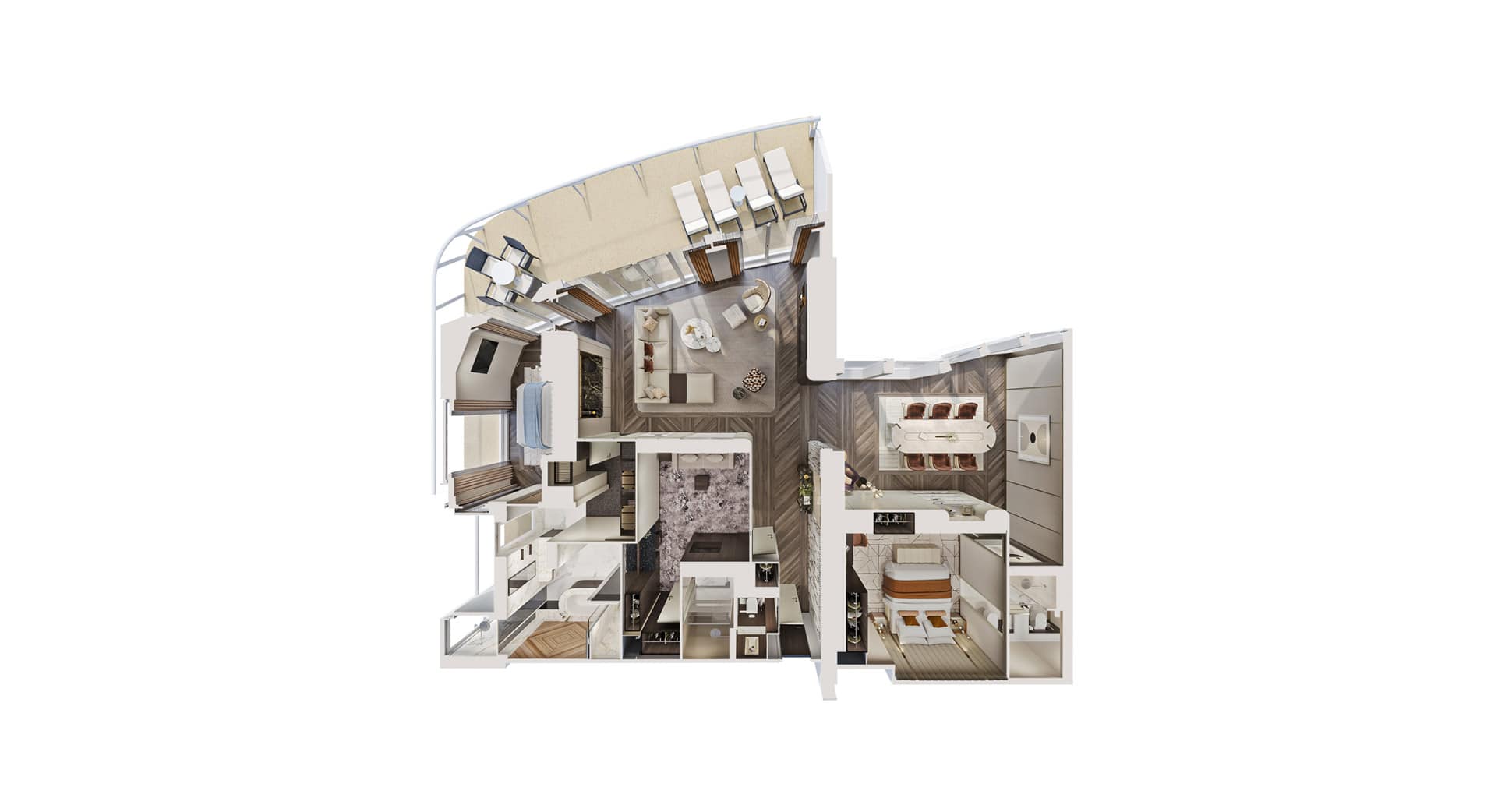Two-story forward-facing observation lounge with breathtaking panoramic views exclusively for guests of The Haven.