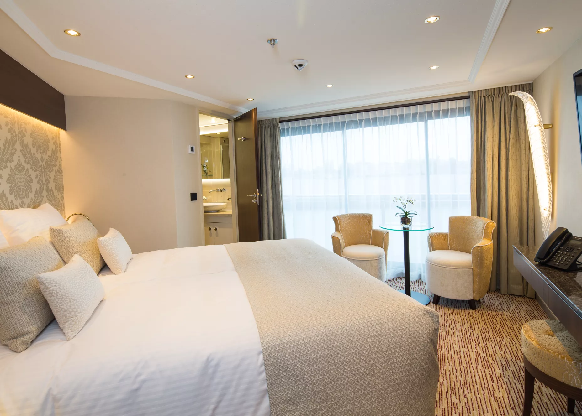 It would be very easy to simply describe the MS Emily Bronte as ‘luxurious’ but it’s much more than that; we have deliberately avoided the current trend for a minimalist style where you could be anywhere in the world, creating instead a unique yet exquisite blend of understated taste, style and elegance at the highest level. Immediately striking is just how exceptionally spacious this vessel is as you enter a gleaming, richly coloured marble-floored lobby flooded with natural light from a stunning atrium above. Moving inside, exceptional creativity from Europe’s finest design studio has produced a superbly balanced masterpiece of onboard style, utilising sustainable rich hardwoods, gleaming brass and polished copper, sparkling glass and intricate wrought iron. The ship is beautifully illuminated throughout – including the exterior and imaginatively furnished with harmonious colour schemes, all designed to create the serene atmosphere reflective of the golden age of cruising which time after time you tell us you adore.