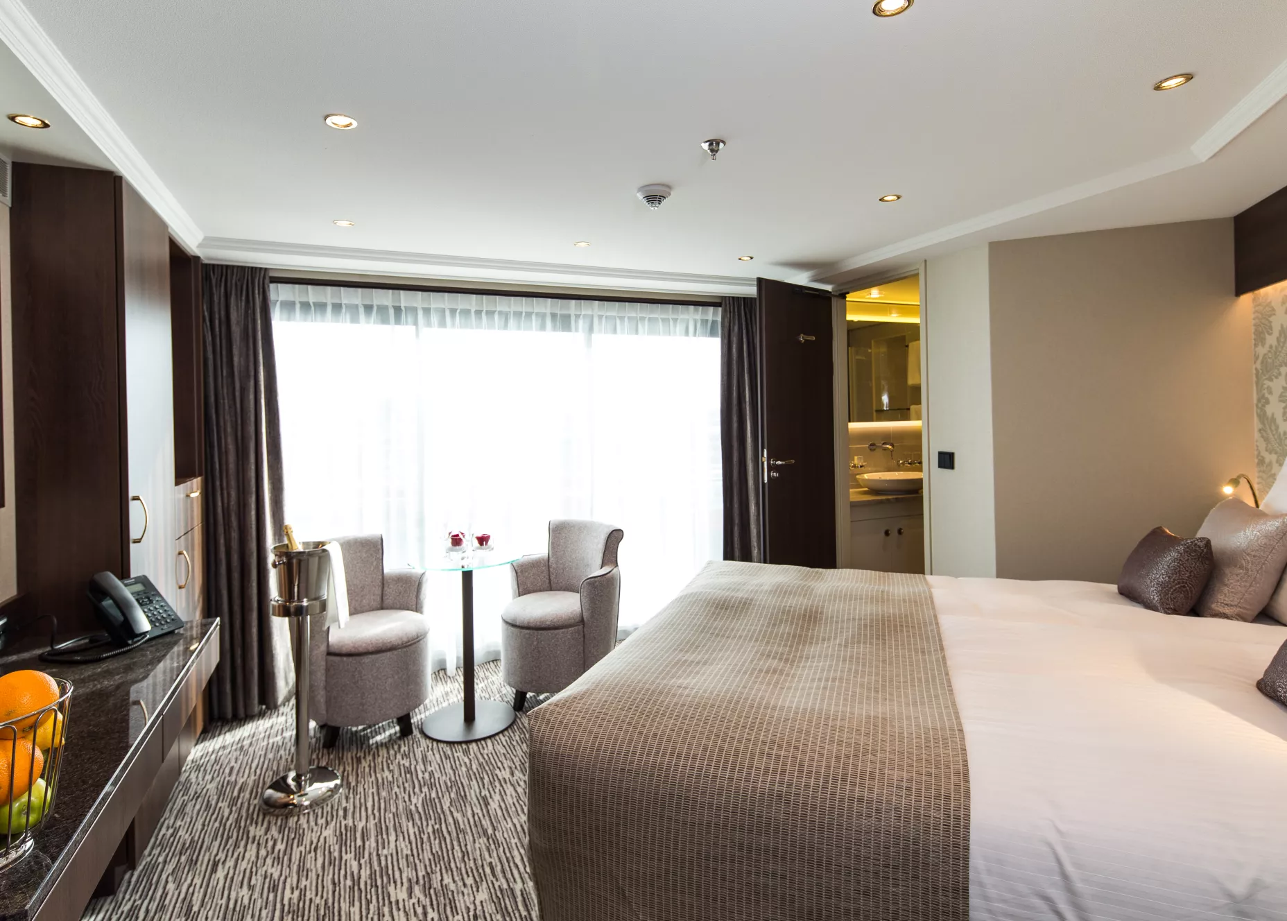 Standard Suite features breathtaking views, a French-style balcony, climate control, and an ensuite bathroom.
