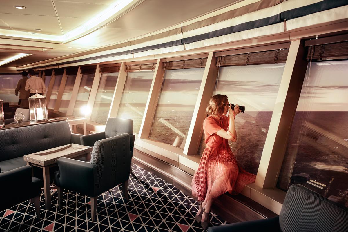 Set on the highest level at the very top of the ship, this is a quiet space for reading and reflection while being dazzled by the undulating seascapes that are constituent to life on board. Borrow a book from the in-house library, read the papers or just embrace the tranquillity of being at sea.