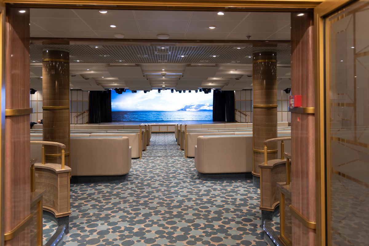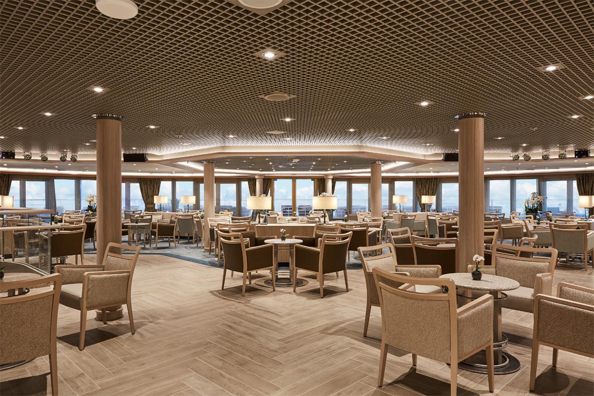 Nestled cosily on deck 8 is the all-new Arts Café. Hosting varied and exciting exhibitions, the Arts Café will showcase paintings and sculptures from a broad range of talent. The distinctive design of the venue is a relaxing getaway and offers daytime cuisine in the form of a café and deli-bar. But come early evening, the venue turns into a lively, evening cocktail lounge meaning you can retreat to one of the comfortable chairs, grab a drink and relax as you absorb the incredible view and watch the world float by. Whether you prefer the gentle sea breeze of the terrace or the sophistication of the inside, a superlative experience is always assured.