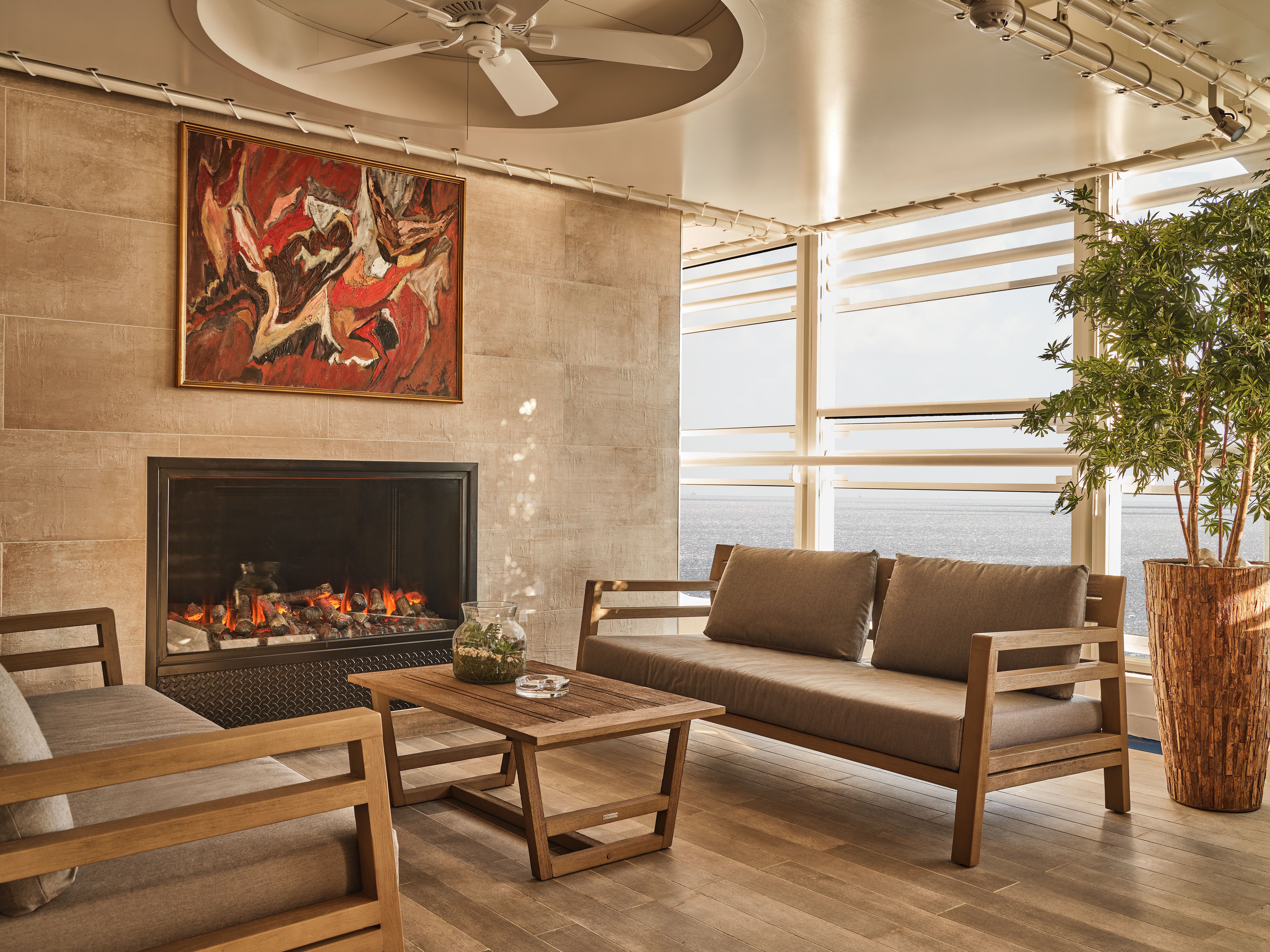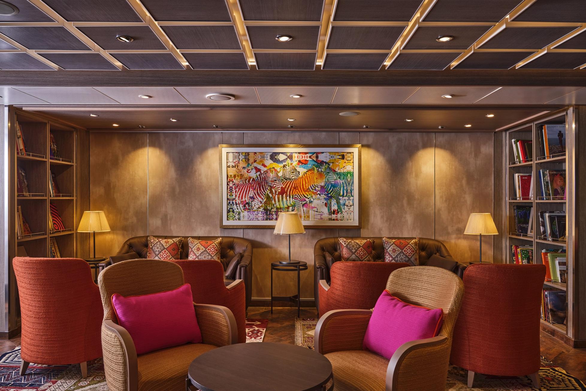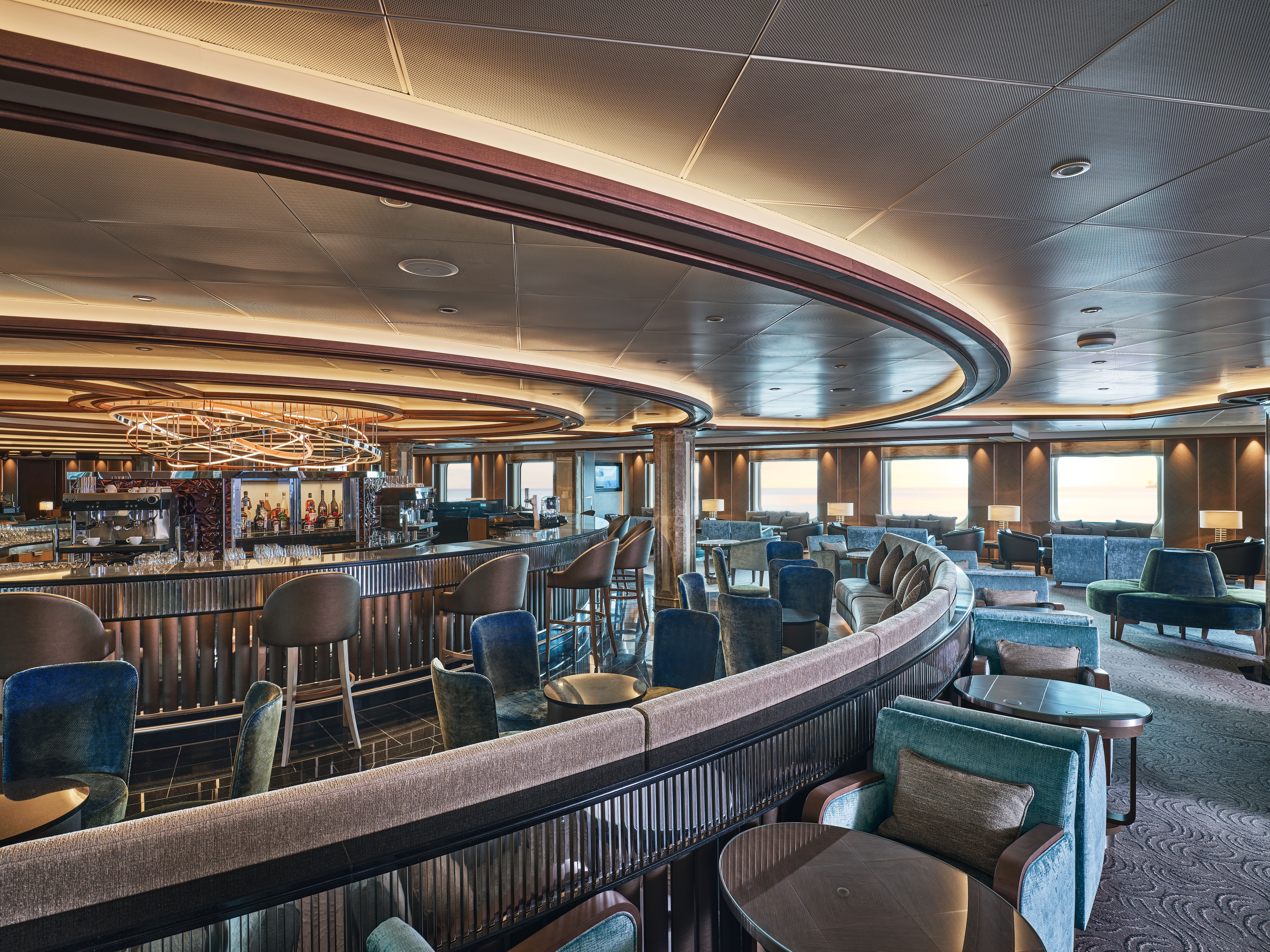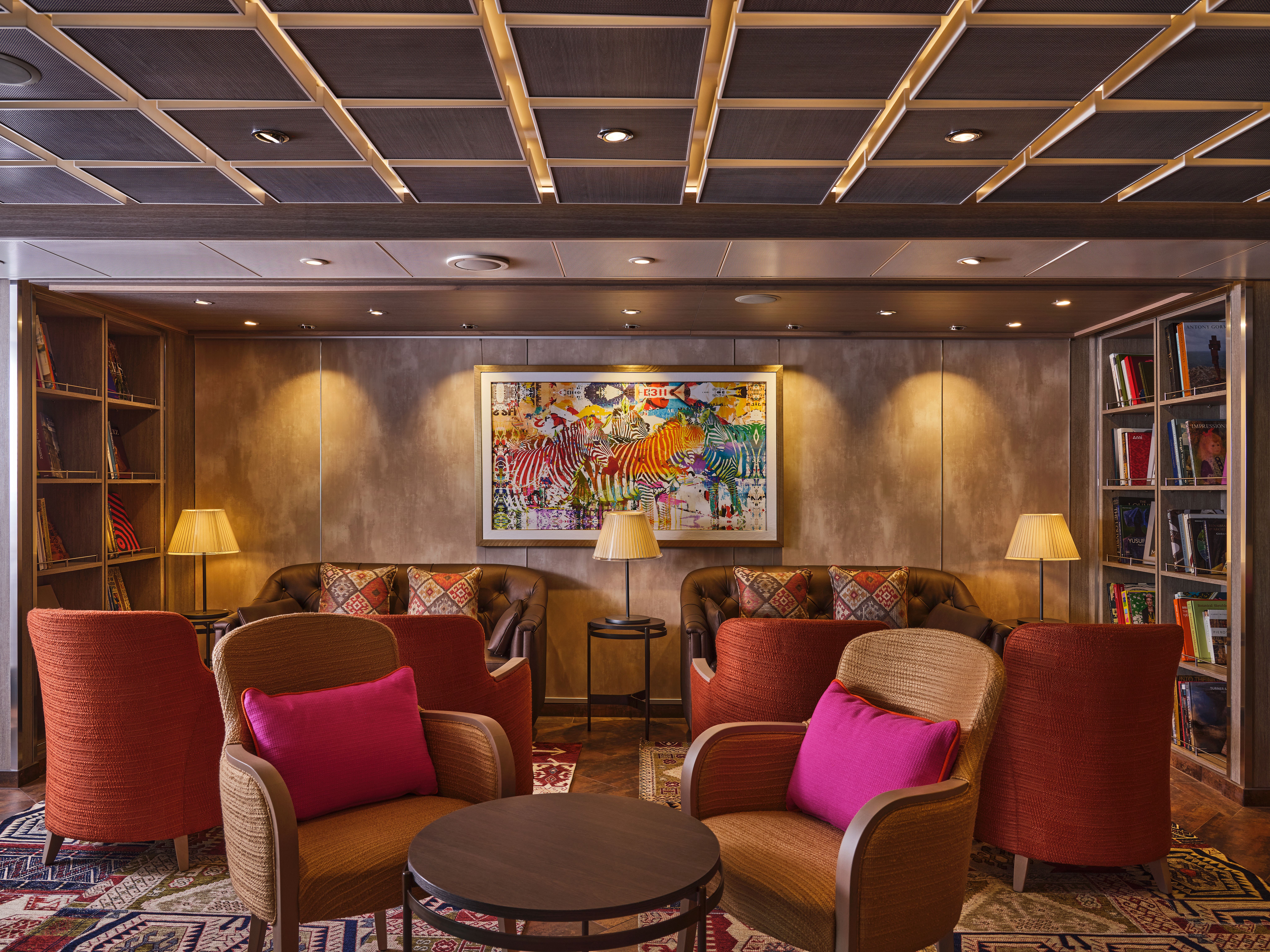 Set on the highest level at the very top of the ship, this is a quiet space for reading and reflection while being dazzled by the undulating seascapes that are constituent to life on board. Borrow a book from the in-house library, read the papers or just embrace the tranquillity of being at sea.