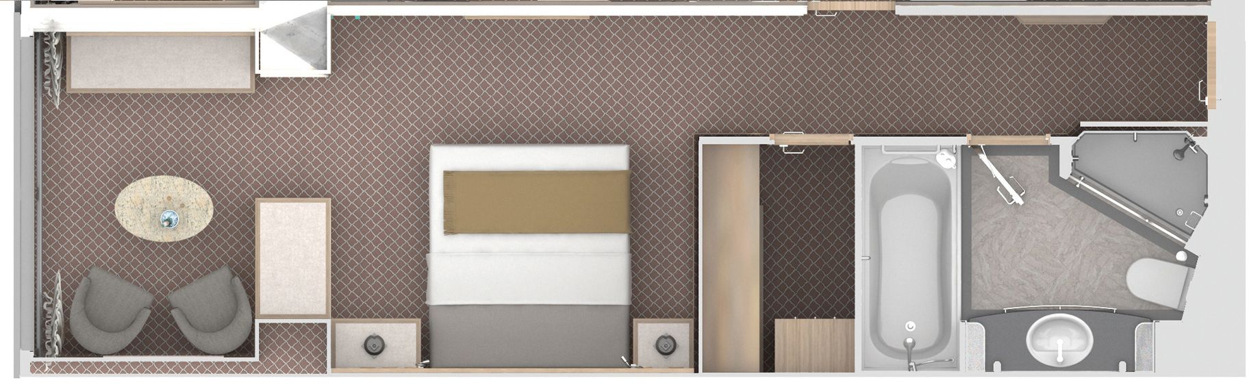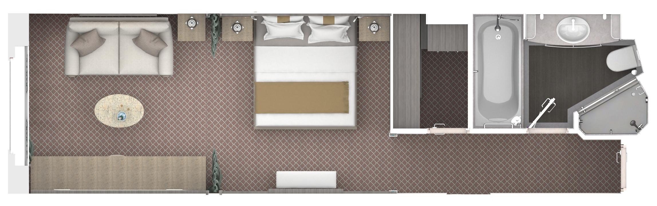 A lower-bow location makes the Classic Veranda Suite a comfortable choice for travellers. A lovely comfortable bed – available in a twin or queen bed configuration – with a choice of mattress makes sure that you enjoy the best night’s sleep of your life, while the seating area is perfect for in-suite dining. But perhaps the Classic Veranda’s best feature lies outside the suite – with the 65 SQF veranda for which the suite was named.