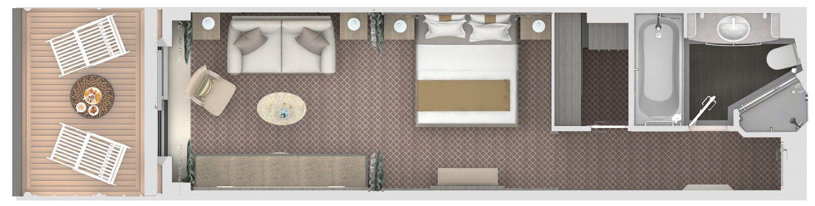 A grand traveller needs a grand suite, and we are happy to oblige! Get ready to scale new heights of comfort in our ultra-luxury Grand Suite. Situated at the front of the ship for the most spectacular views, the Grand Suite is for travellers who like the finer things in life. A large veranda, furnished with sunbeds, makes for perfect memories. Indoors, the sumptuous seating area and cosy bedrooms are the very definition of relaxing in style.