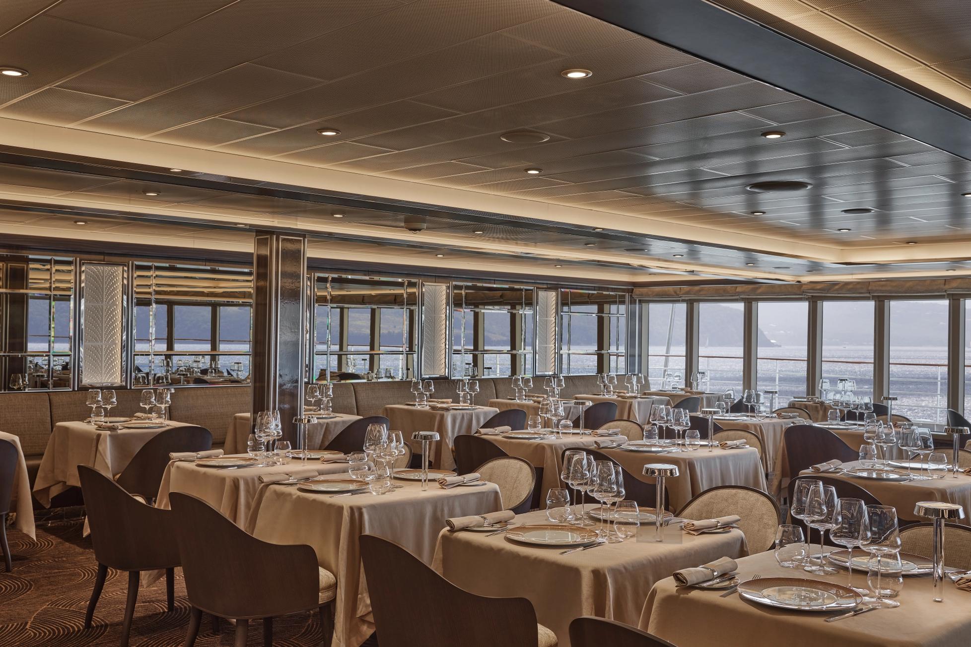 Silversea’s signature French restaurant, La Dame is the epitome of fine dining. Featuring the rich, smooth flavours of France, La Dame’s reputation for gastronomic excellence is fully upheld aboard Silver Dawn. Expect only the very best; chic contemporary style, vast ocean-view windows, crisp white table linens and impeccable white-gloved silver service with a smile. Decorated with custom-made interior panel compositions created by Lalique, there is no better place to feel the culinary soul of France than in La Dame.