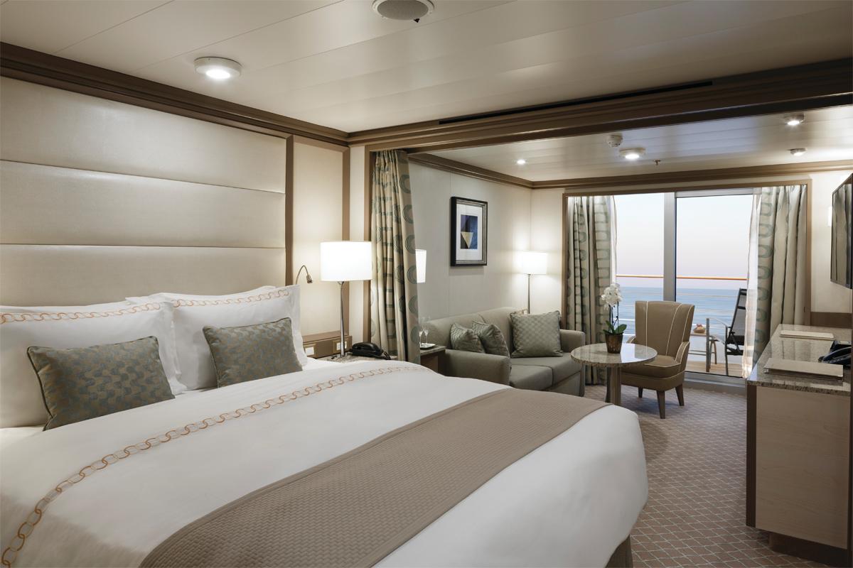 Available in a one or two bedroom configuration (so perfect for families) the Owner’s suite is the epitome of elegance at sea. A large seating area is the hub of the suite, equipped with all mod cons – think a Bose sound system, an interactive 55” TV and even an Illy coffee machine! Whether inside or relaxing on the large teak veranda, the Owner’s suite offers supreme comfort every hour of the day!