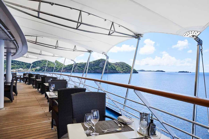 On board this luxury cruise ship a divine selection of Italy’s best cuisine is served à la carte in La Terrazza. Authentic recipes and the freshest ingredients come together with flair and passion aboard this luxury cruise — a flavourful expression of Silversea’s distinctive Italian heritage. La Terrazza uses buffalo mozzarella from Naples, organic balsamic vinegar and olive oil from Umbria, and air-dried ham out of Parma. The Emilia-Romagna region also produces Silversea’s 24-month aged Parmigiano Reggiano, while the pasta is made daily right on board. La Terrazza is open for casual, buffet-style breakfast and lunch with indoor or al fresco dining on the outdoor terrace. During the evening, La Terrazza transforms into an à la carte traditional Italian restaurant. Open-seating for breakfast and lunch. Seating is limited for dinner and reservations are recommended.