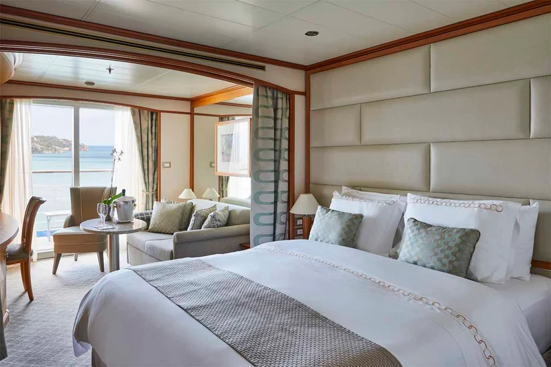 A mark of distinction. Sumptuous. Spacious. Rich textures and panoramic views surround you with distinguished luxury. An extravagant suite for an extravagant cruise.