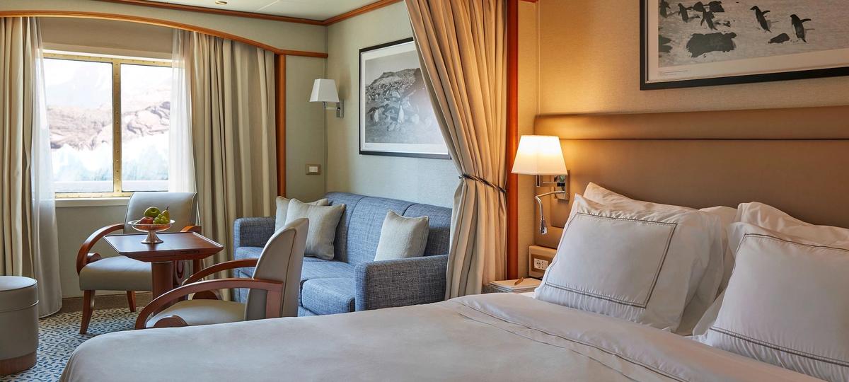 Expertly designed and exquisitely appointed. The Grand Suite on the Silver Wind ideal for entertaining friends or enjoying a quiet dinner “at home”. Available as a one-bedroom configuration or as two bedroom by adjoining with a Veranda Suite.