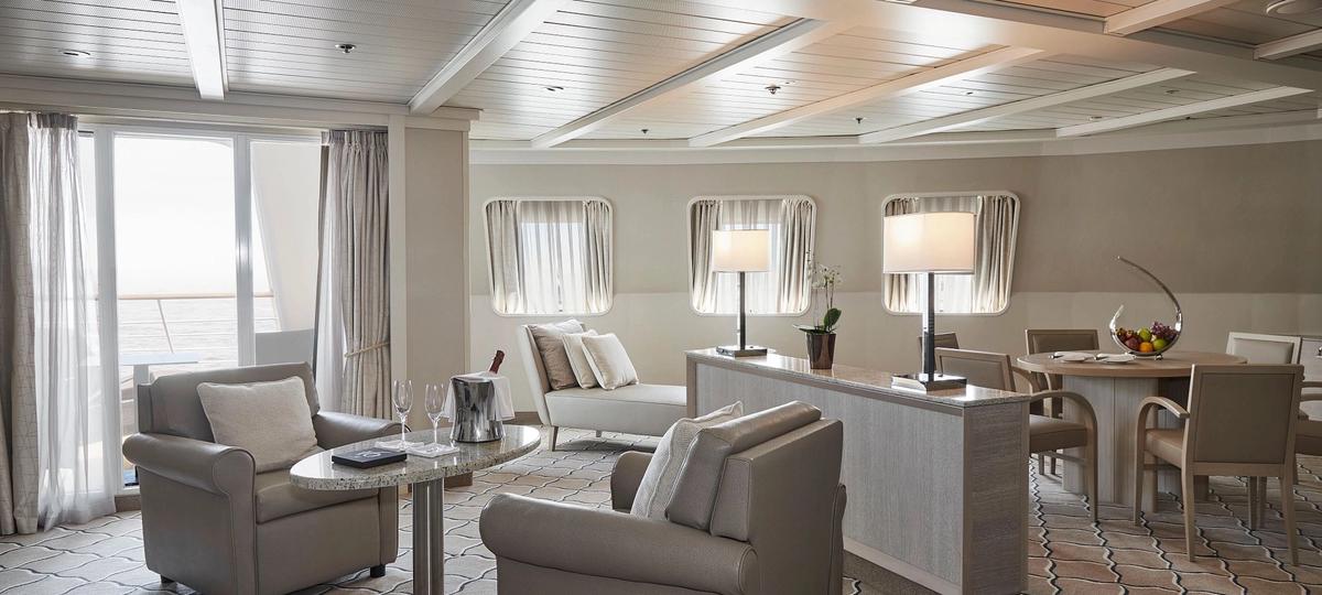 For those wanting more space, Silver Suites are ideal. Stylish and sophisticated. Separate dining and living rooms. Larger verandas. Situated midship on the Silver Wind. Perfection in design for comfortable living. Silver Suites accommodate three guests.