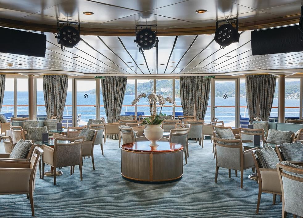 Set on the highest level at the very top of the ship, this is a quiet space for reading and reflection while being dazzled by the undulating seascapes that are constituent to life on board.