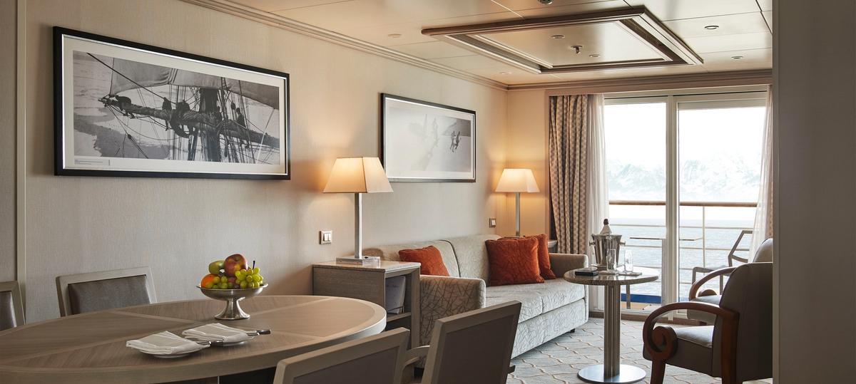 The name says it all. A stylish apartment. Prestigious and classic. For those who seek the superlative level of space, comfort and service on board. The Owner’s Suite is available as a one-bedroom configuration or as two bedrooms (as illustrated) by adjoining with a Vista Suite so you can enjoy your luxury cruise in style.